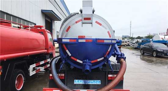 專用部分由取力器、傳動軸、真空吸污泵、壓力罐體、液壓部分,管網系統、真空壓力表、視糞窗、洗手裝置等組成,隨車配置大功率真空吸污泵和優質液壓系統,罐體封頭一次壓鑄成型、罐體可后開、雙頂自卸。罐內污物可通過后蓋直接傾倒,具有真空度高(比吸糞車的吸力更大)、噸位大、效率高、用途更廣泛等特點。油水分離器,水氣分離器,液壓自卸裝置,專用真空吸污泵,容積壓力表,吸物導管,自流閥,真空罐體,連通器(視糞窗),全自動防溢閥,液壓套件。采用國內技術領先的吸污專用泵,吸力大,吸程遠,特別適合用于市政環衛,廠區,礦山,小區等下水道內的淤積物的抽吸、裝運和排卸,尤其是可吸下水道泥漿、淤泥、石子、磚塊等較大物體、含水量較小等物質。抽滿污(糞)罐體時間:≤5min,吸程:≥10m。自吸自排,壽命長,工作速度快,運輸方便。吸污車與吸糞車具有相同原理,但吸污車又與吸糞車有著不同用途。區別就在于吸污車罐體為圓形罐,結構更緊密,可以耐更高壓力提供更大的吸力,可用于收集清理運輸污水,污泥。