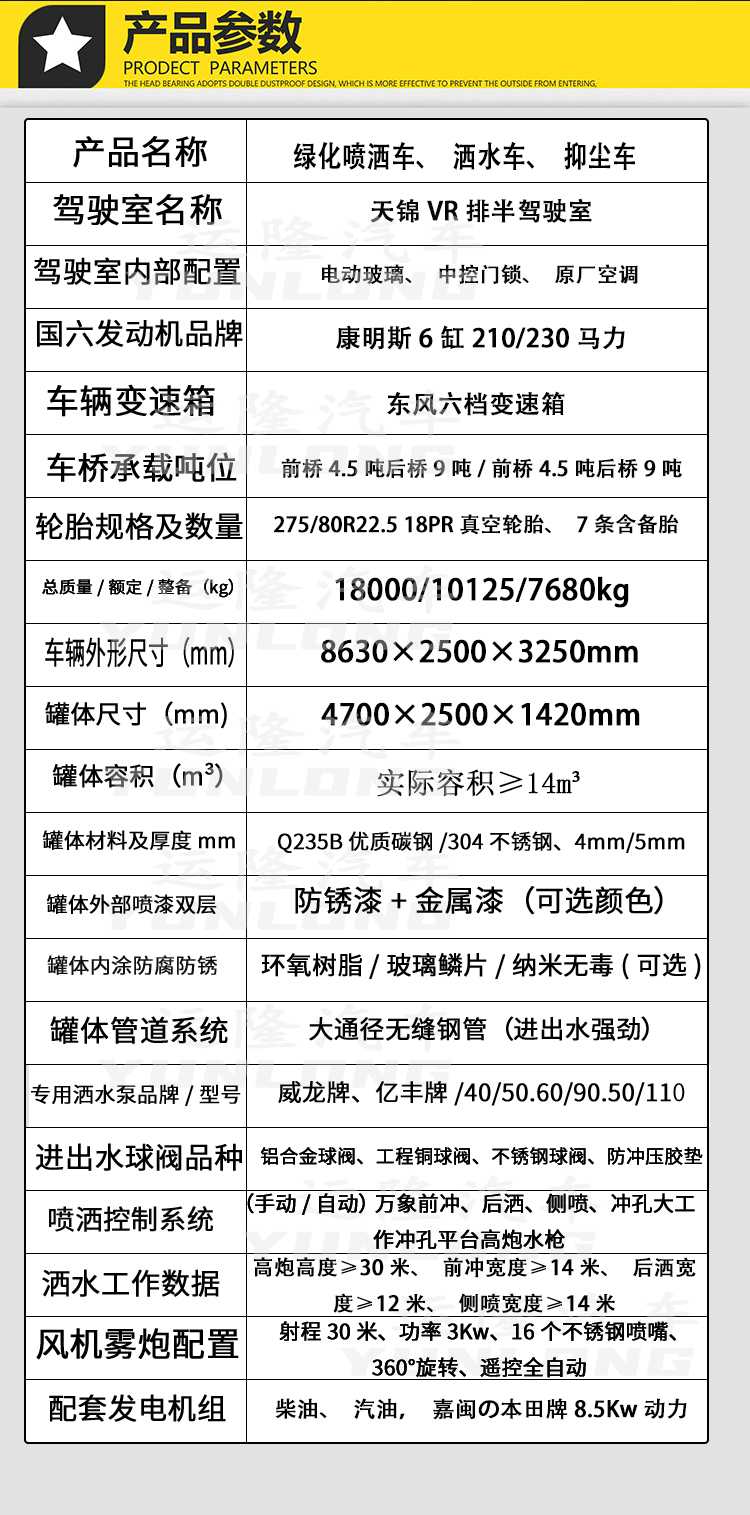 國六東風天錦12噸灑水車
