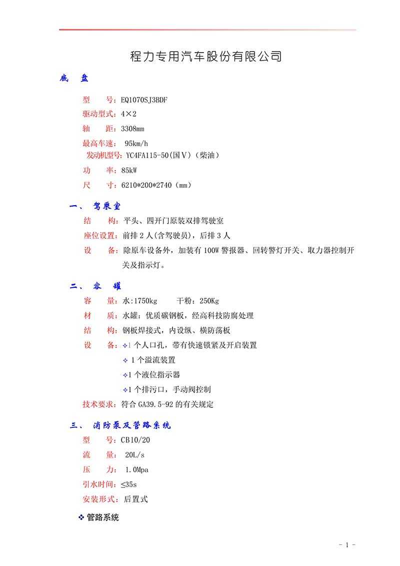 程力威程力干粉水聯用東風小多利卡消防車