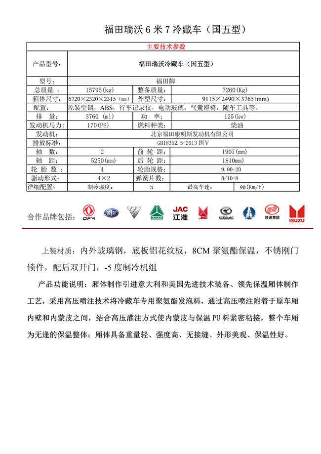 福田瑞沃6米7冷藏車
