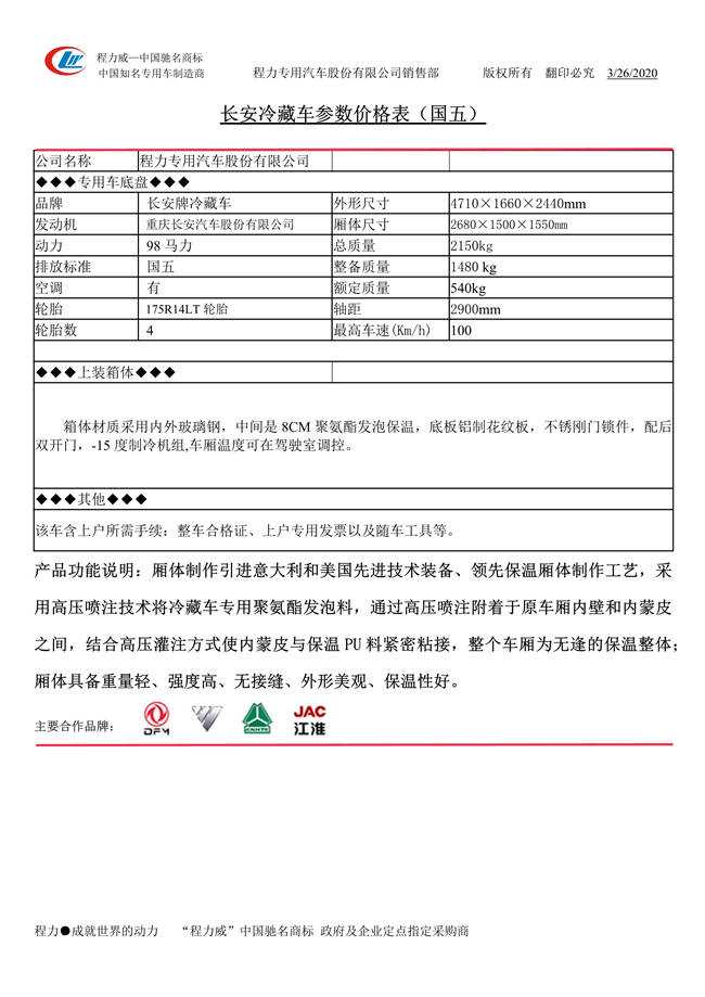 長安2米7冷藏車
