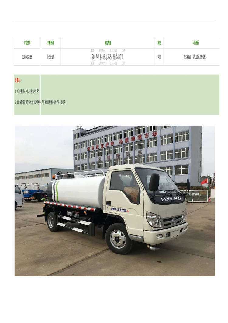 福田2立方藍牌灑水車