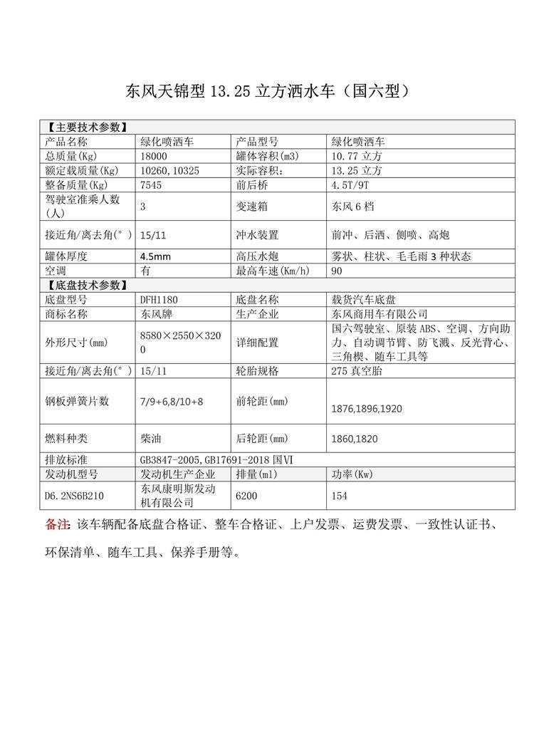 國(guó)六東風(fēng)天錦13.25立方灑水車